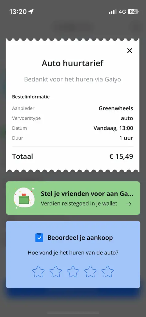 2. Open the Gaiyo app and tap on your active Greenwheels reservation in the dashboard.